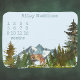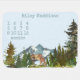 Forest, mountain, adventure begins theme, with momma and baby deer. This design has rustic, watercolor mountains pine trees, and an adult momma deer with her fawn in front. Month numbers in upper left corner, and name template for baby at the top.