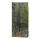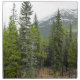This napkin design features a photo of a forest scene with coniferous trees, along with a mountain in the background.