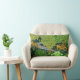 FOREST ANIMALS, DEERS BY A BROOK Blue Green Floral Lumbar Pillow
