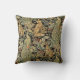 FOREST ANIMALS ,FOX, PEACOCK, HARE IN GREEN FLORAL THROW PILLOW