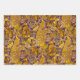 FOREST ANIMALS,FOX,PEACOCK,HARE,RED YELLOW FLORAL WRAPPING PAPER SHEETS