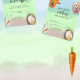 Gender neutral baby shower invitations. An illustration of a watercolor woodland animals: fox with blueberry in paws, bear with raspberry, hedgehog with pear, bunny (rabbit) with carrot. The watercolor background is multicolored.