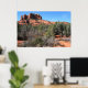 This is a low resolution image for the web, the poster you'll get has vibrant color and sharp detail. A panoramic view of the forest and landscape at the base of the Cathedral Rock in Sedona, Arizona. Photography by Minerva Bloom.