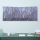 Graphic photo, of a bare, wooded forest, displayed in violet-purple, hues-cast in the lingering, traces of, a pale, blue, twilight.