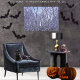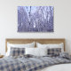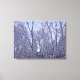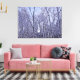 This digitalized, graphic photo, of a bare, wooded forest, displayed in muted, tones of, violet, purple, blue, white, gray, and black-is cast, in the lingering, traces of a, pale-blue, twilight.