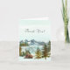 This is a forest, mountain theme design, with momma and baby bear. "Let the Adventure Begin!" is the inspiration. This design has rustic, watercolor mountains with reflecting lake in front, and pine trees surrounding the lake. Adult bear with her cub in front with "Thank You!" text. On back, cub is inside a rustic, floral, oval wreath.