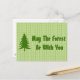 A simple design of a tree in green and the words "May the forest be with you" updates the familiar greeting with an ecological message much needed in this time when our forests are threatened with extinction. Share the blessing and the message that our forests, trees, and each other are all connected.