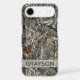 Customize this forest branches camouflage iPhone 17 air case with your name in a trendy modern CAP font in gray on opaque cream. It's masculine and perfect for your favorite military, hunting, country or outdoorsman!