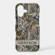 Customize this forest branches camouflage iPhone 17 case with your name in a trendy modern CAP font in gray on opaque cream. It's masculine and perfect for your favorite military, hunting, country or outdoorsman!
