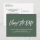 Need to postpone or reschedule your wedding? Alert your guests that your wedding date has changed with this Elegant Wedding Postponement or Date Change announcement featuring a trendy script lettering saying "Change the date" in white over a contemporary forest green background.