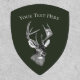 This patch is designed with a drawing of a deer on a forest green background. Customize with text or change the background color.