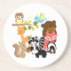 Our Forest Friends T-shirts, bodysuits, mugs, bags, cards, wall clocks, keepsakes, magnets, plates, and other items features adorable forest animals including an owl on a branch, a blue bird, brown bear, red fox, skunk, raccoon, squirrel with acorn, and a deer!