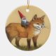Forest Gnome and Red Fox Ceramic Ornament
