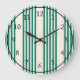 Forest green and beige five stripes pattern large clock