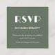 Looking for the perfect wedding RSVP card? Look no further! Our compact customizable modern wedding RSVP card features stunning white art deco-style typography that is sure to impress your guests. With a deep forest green background, you can easily include your own custom text to make it truly unique. On the reverse, create a brand new QR code that links directly to your wedding website for easy access and convenience. Go the the "personalize" option, add your wedding website URL to the area provided, and a QR code will generate on the design just for you. Order now and let the RSVPs start rolling in!