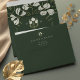 This Art Nouveau Splendor Wedding Envelope set exemplifies sophistication and attention to detail. The exterior's deep forest green hue provides a rich canvas for the elegant white and gold monogram emblem, which hints at the refined style waiting inside. Upon opening the flap, the recipient is greeted by a continuation of the stunning white floral pattern against the same lush green background, creating a visual harmony and anticipation for the enclosed invitation. The back of the envelope features the couple's address in a classic typeface, adding to the envelope's bespoke feel. This envelope set is not just a casing but an integral part of the wedding narrative, designed to intrigue and delight guests with its classic beauty and artful design.