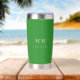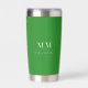 Forest green background color. Personalize and add your monogram initials and full name. White text. For both him and her.