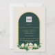 Forest Green Gold White Roses Winter Wedding Invitation