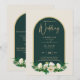 Plain white envelopes are included with paper invitations and will come to fit the invitation size you select. If you don’t need the envelopes, you may choose to not receive them by selecting the dropdown below "Envelopes" and choosing "None." If you’d like to have a design on your envelopes, you can browse all of these available envelopes to find the design that complements your Forest Green Gold White Roses Winter Wedding Invitation.