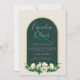 Forest Green Gold White Roses Winter Wedding Invitation