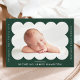 Forest Green Modern Scalloped Photo Frame Birth Announcement