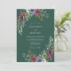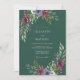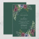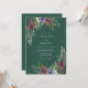 This design features a rich forest green backdrop adorned with moody floral clusters. Deep burgundy roses and dusty blue anemones create a striking contrast against lush eucalyptus and sage green foliage. Perfect for a winter or autumn event, the watercolor style evokes a romantic and sophisticated atmosphere.