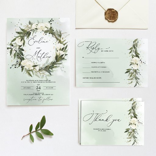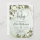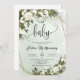 Forest Green Olive foliage White Roses Oh Baby Invitation
