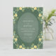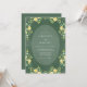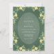 This design features a deep forest green backdrop adorned with a delicate arrangement of butter yellow roses and lush greenery. Sprigs of eucalyptus and pale green leaves create a timeless, nature-inspired aesthetic. The palette blends moody earthy tones with sunny floral accents for a sophisticated, organic feel.