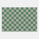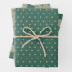 All sheets are forest green and sage. One wrapping sheet has a checkerboard pattern. The other sheets have a pattern of dots.