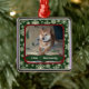 This trendy design features a forest green background with a snowflake pattern. Upload your own pet's photo to this premium ornament and customize the name on the whimsical banner. You can even include the year if you prefer!