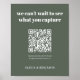 Forest green wedding photo share QR Code sign. Place these signs at your wedding reception tables so guests can scan to upload the photos they took at your wedding reception to your album or social media. To generate a new QR code on the design, add the URL of your online wedding album or social media handle in the area provided, using the "personalize" feature. A brand new QR code will then be added to to the design.