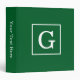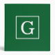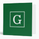 Forest Green White Framed Initial Monogram 3 Ring Binder