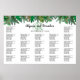 Forest greenery, monogrammed wedding seating chart poster. Green leaves and ferns make a border across the top of this chart ready to customize by section. Seat guests alphabetically or by table number / name. Light green initial at the top with first names of the couple and wedding date.