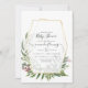 Woodland greenery baby shower invitation featuring wild herbs, ferns, leaves and eucalyptus with gold geometric frame customizable to your event specifics.