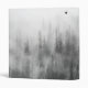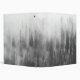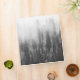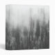 This black and white photo features a forest covered in fog.