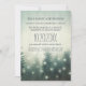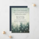 Rustic elopement announcement with spruce trees decorated with fairy lights.