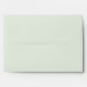 Rustic envelope in pale green with a lining of a photo showing spruce trees decorated with fairy lights.
