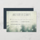 Rustic wedding RSVP with spruce trees decorated with fairy lights.