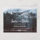 This beautiful and serene postcard features a gorgeous photography of a forest landscape. The snowy mountains in the background add a cozy feeling. This scene is perfect for a bride and groom that enjoy nature and the outdoors. This design is elegant and captivating with a romantic scenery and a soothing color palette.