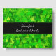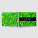 This guestbook design features an abstract pattern of many triangle shapes colored various shades of green. It could perhaps be said to resemble a dense forest of coniferous trees. It also features a personalized event description. For example, it could be used for somebody's retirement party.
