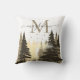 Forest Pine Trees Script Name Monogram Throw Pillow