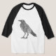 A beautifully detailed silhouette of a raven sits on the front of this one of a kind t-shirt with its wings folded to its sides. The dark silhouette is covered by a vintage illustration of a dark and creepy forest filled with bare trees and branches. Ravens would be likely to be seen flying through such a forest, but in this case it is the forest within the raven. This mysterious graphic would make a charming gift or stylish addition to your own wardrobe.