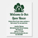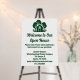 A cool forest real estate company open house foam board sign for a realty business located in a forested town or city. The realtor name is written in green script under the house and trees. Great marketing item for a home builder.