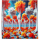 This shower curtain has a forest pictured on it.