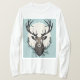 Stylized illustration of a deer head with large antlers, overlaid on a circular backdrop suggesting a forest scene. Features a modern, graphic design.