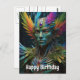 A digital portrait of a forest spirit with vibrant feathered wings and a crown made of feathers.