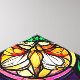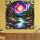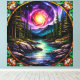 A captivating artistic depiction of a forest landscape with a vivid cosmic sky rendered in a stained glass style.