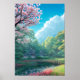 Explore the harmonious coexistence of nature and architecture with this stunning digital artwork, featuring a Japanese temple complex nestled by a beautiful green forest with a calm river passing by in front. The intricate details of the temple complex and the serene beauty of the forest and river create a tranquil and peaceful scene that captures the essence of Japan's cultural and natural heritage.