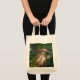 The printing came out very well, better than I had anticipated. The natural color fabric is sturdy with strong seams and comfortable handles. This tote fits easily over my shoulder. As it is filled, the bottom flattens out--very cool! I would buy this product again. This grocery tote holds a lot of groceries! The image quality was very good. The colors were a little darker than I had expected. The darkness may have been due to printing on a natural color fabric rather than on white. The cat design is attractively centered on the tote. The spirit of the design is very lively, just as it appears on the Zazzle website.