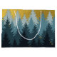 A beautiful design showcasing trees in a forest and a golden sky. Color tones include neutral blue tones and gold. A rustic design ideal for Autumn, Fall, Winter home decor and the festive holiday season.